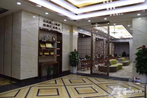 一樓大堂和高端客戶接待區以歐式裝修風格為主,結合中國風的花紋屏風,顯得十分典雅和高貴,給人以尊貴之感。