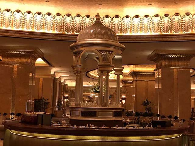 酒店的裝修用的全部是最新材料和技術,飯店的圓頂用最新照明技術、防腐特殊材料和純金制造,一到晚上就會自動發光,金光閃閃,永不掉色。