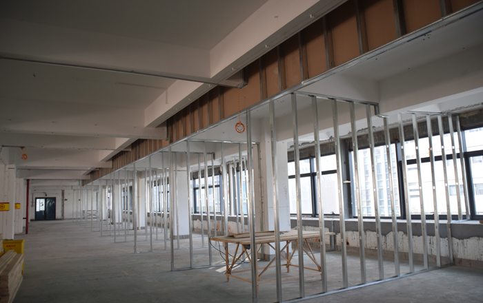 ▼ 2017年02月11日,輕鋼龍骨隔墻。