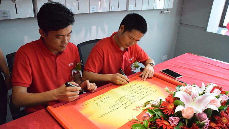 接下來(lái),最精彩的時(shí)刻到了。滿滿的香檳環(huán)節(jié),人手一杯,慶祝分公司開(kāi)業(yè)大吉。而新美集團(tuán)副總裁黃鼎華與東莞分公司總經(jīng)理胡總更是添上了超級(jí)大彩頭,立下1500萬(wàn)的業(yè)績(jī)軍令狀!